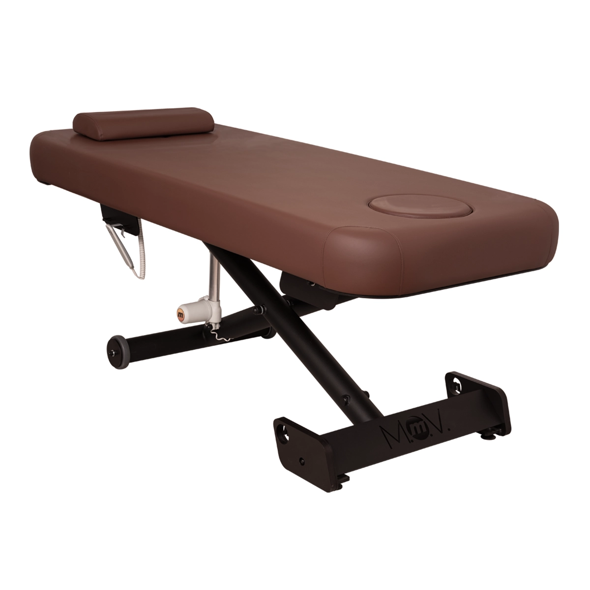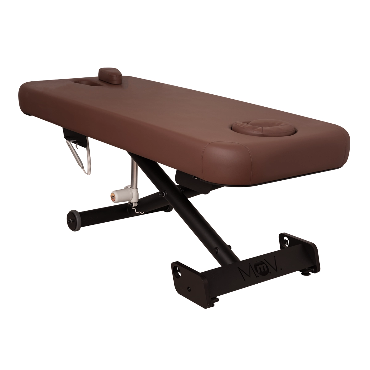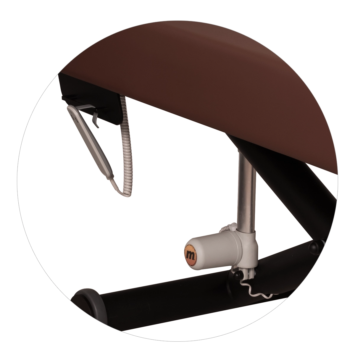 Elektryczna regulacja wysokości w zakresie 71–93 cm pozwala dopasować stanowisko pracy do wzrostu terapeuty oraz rodzaju wykonywanego zabiegu. Sterowanie odbywa się za pomocą pilota, co umożliwia płynną i wygodną zmianę pozycji stołu. Dzięki temu możliwe jest utrzymanie bardziej ergonomicznej pozycji pracy nawet przy długotrwałych zabiegach. Konstrukcja stołu wspiera organizację stanowiska pracy i ogranicza przeciążenia układu ruchu. Model zachowuje wszystkie funkcjonalności wersji podstawowej.