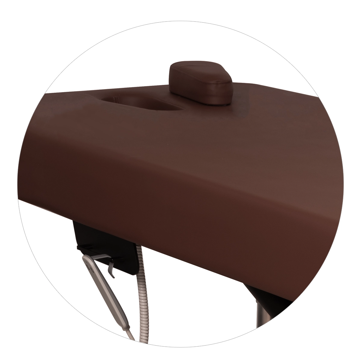 System HOT!Zone wprowadza dodatkowy element funkcjonalny poprzez podgrzewanie powierzchni roboczej. Ciepło poprawia komfort klienta oraz wpływa na lepsze rozluźnienie mięśni podczas zabiegu. Dwa otwory na twarz, w tym jeden ergonomiczny z wymienną poduszką, zwiększają możliwości konfiguracji stołu. Poduszka kosmetyczna oraz półwałek na rzep poprawiają stabilizację głowy i szyi. Rozwiązania te pozwalają na szybkie dostosowanie stołu do różnych procedur.