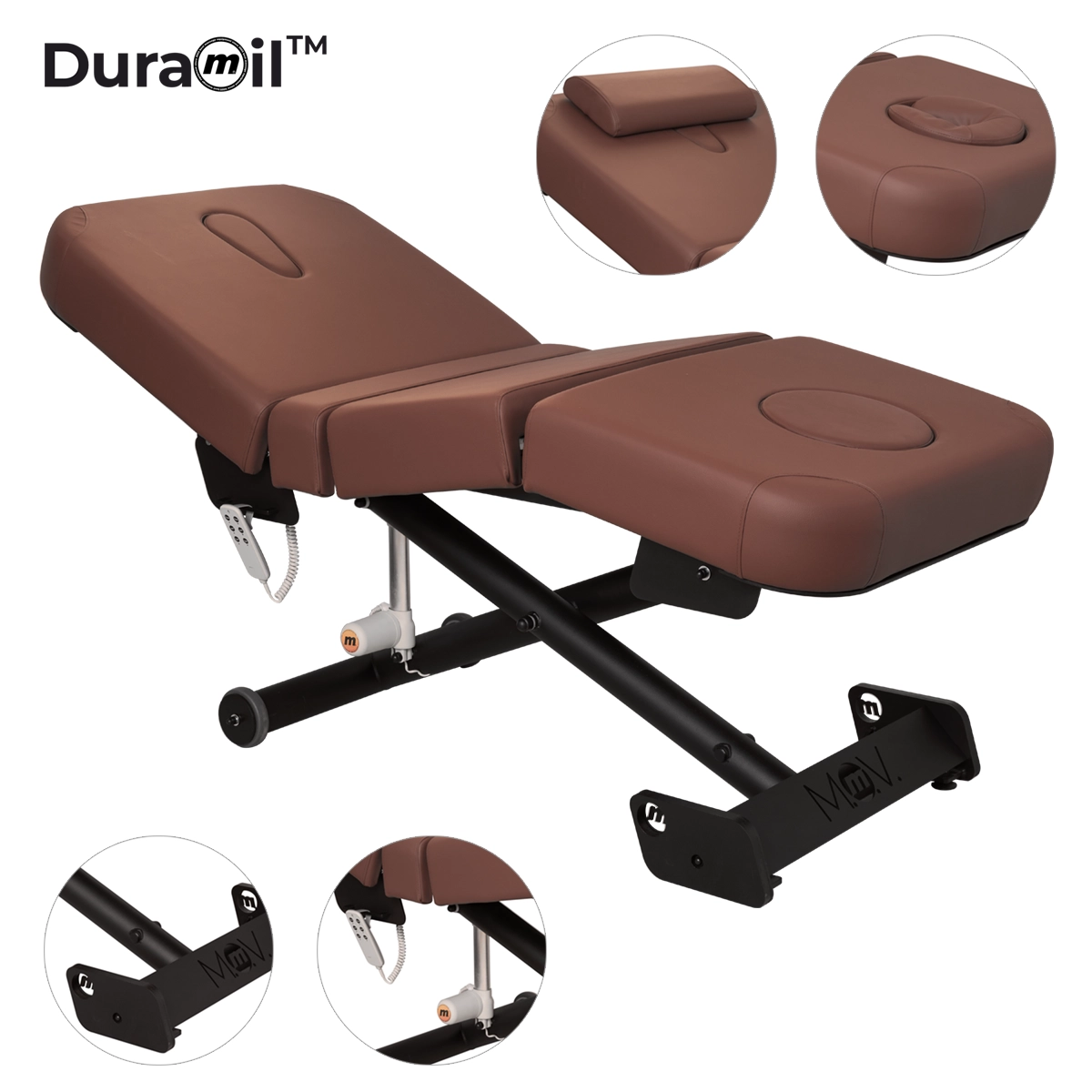 Tapicerka DuraOil charakteryzuje się wysoką odpornością na oleje oraz środki kosmetyczne, dzięki czemu stół jest przystosowany do intensywnego użytkowania w środowisku profesjonalnym. System HOT!Zone posiada konstrukcję rozłączną i wymienną, a elementy grzewcze są zakryte pokrowcem ochronnym, co ułatwia utrzymanie higieny oraz estetyki powierzchni roboczej. W przypadku pracy bez systemu grzewczego stół może nadal funkcjonować jako standardowy model zabiegowy. Wytrzymałość dynamiczna 800 kg oraz statyczna 2000 kg potwierdzają stabilność całej konstrukcji. Produkt objęty jest gwarancją 3 lata na napędy i 5 lat na ramę, natomiast system HOT!Zone posiada gwarancję 24 miesiące.