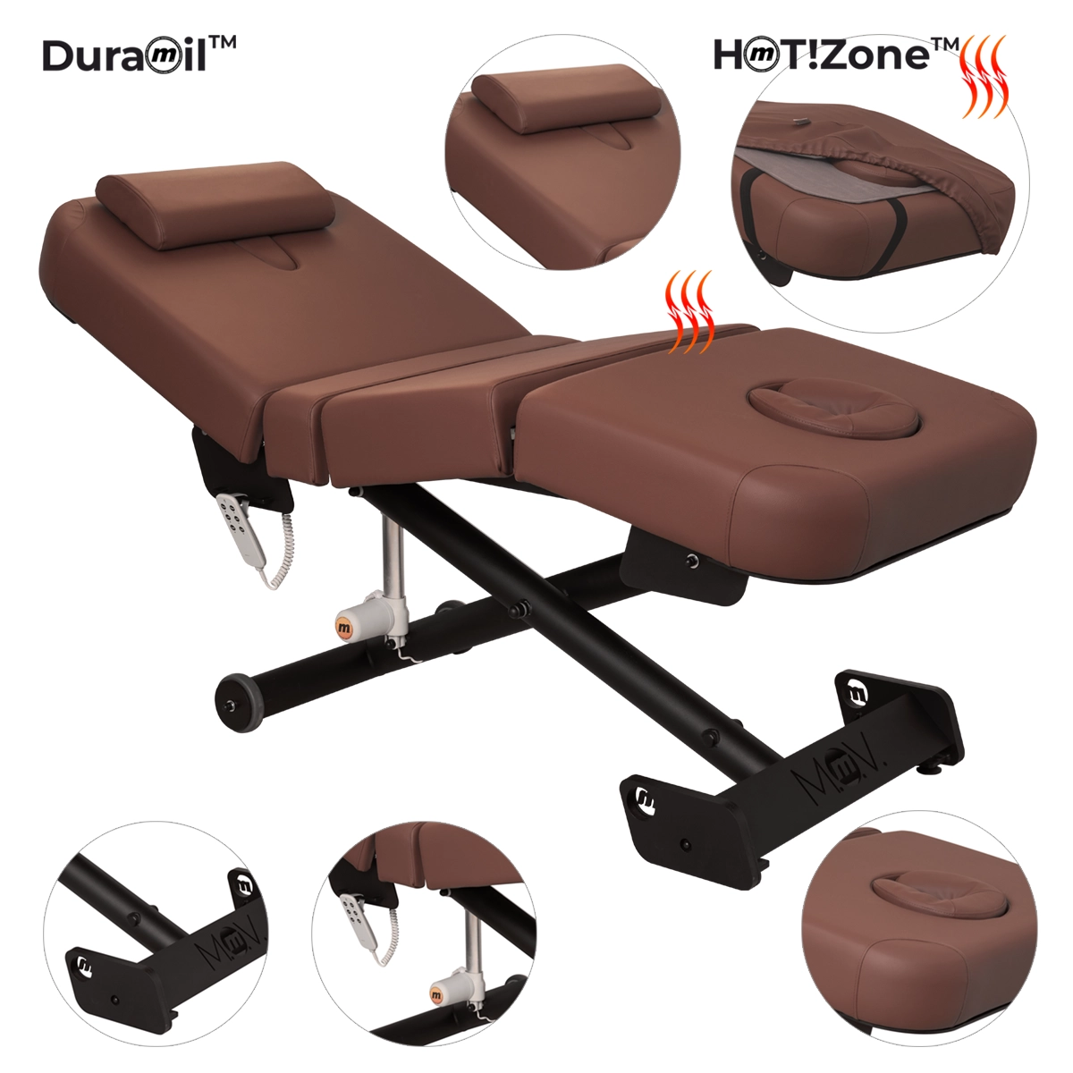 Zen Lift Pro HOT!Zone to elektryczny stół do masażu wyposażony w system grzewczy HOT!Zone, przeznaczony do nowoczesnych gabinetów SPA, Wellness, kosmetologii i linergistyki. Model łączy elektryczną regulację wysokości oraz panelu pleców z podgrzewaną powierzchnią roboczą, co zwiększa komfort klienta podczas zabiegów. Dodatkowa poduszka kosmetyczna, dwa otwory na twarz i stabilna konstrukcja rozszerzają możliwości zastosowania stołu w pracy manualnej i zabiegowej.